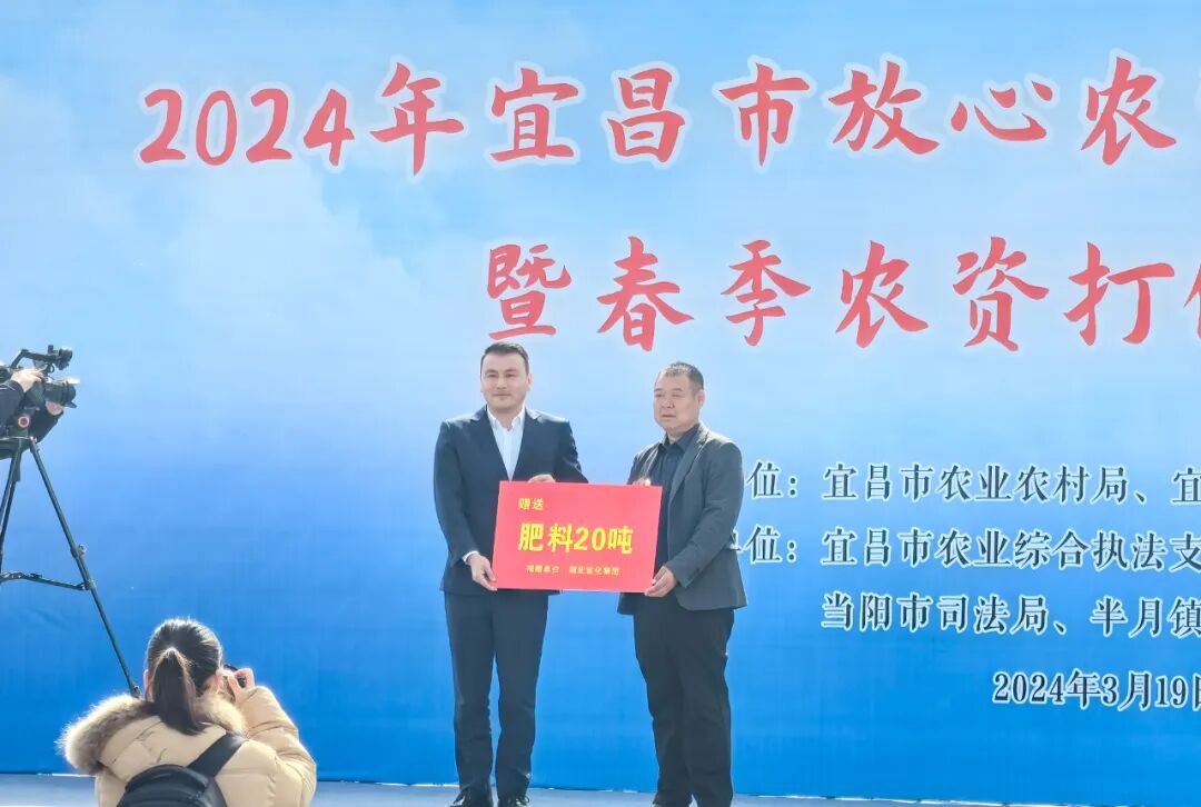 3月19日上午,宜化集团分别向当阳市、枝江市捐赠了优质高效的新型复合肥料。此次捐赠活动不仅为当地农民提供了急需的化肥支持,也为企业与农户之间的沟通交流搭建了良好的平台。活动现场,宜化化肥销售人员与农化专家就化肥生产、销售、农户体验等方面进行了深入交流。