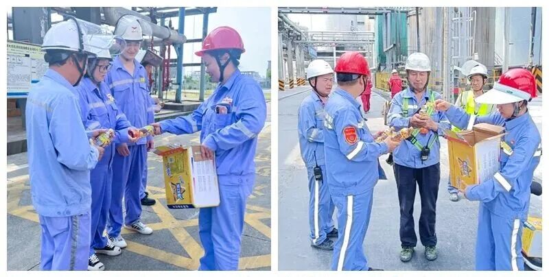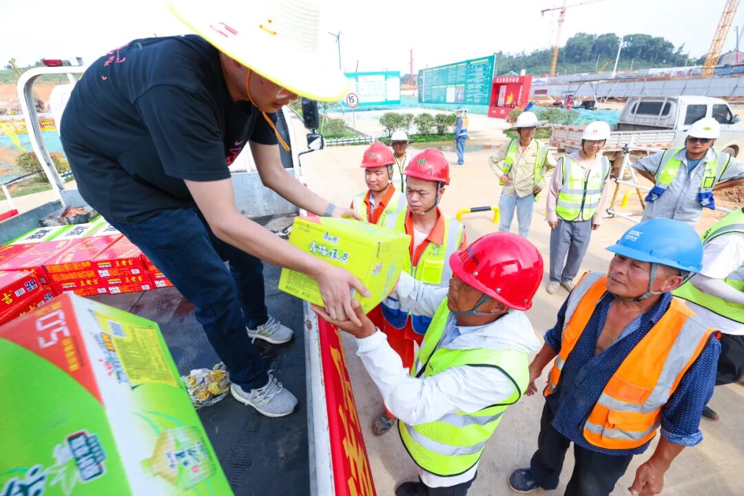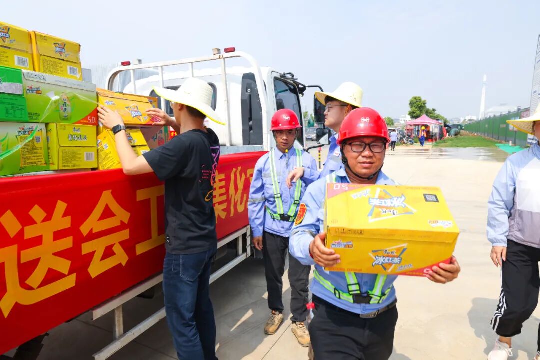 工作人员把防暑降温物资
